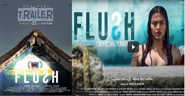 ഐഷ സുല്ത്താന സംവിധാനം ചെയ്ത ഫ്ലഷ് എന്ന സിനിമയുടെ ട്രെയിലറിന് മികച്ച പ്രതികരണം. യുറ്റൂബിലെ ട്രെന്ഡിങ് നമ്പര് 22- ല് എത്തിയിരിക്കുന്ന ഐഷ പങ്കുവെച്ചു. പൂര്ണ്ണമായും ലക്ഷദ്വീപില് ചിത്രീകരിച്ച സിനിമയില് മുംബൈ മോഡലായ ഡിമ്പിള്പോള് ആണ് കേന്ദ്ര കഥാപാത്രത്തെ അവതരിപ്പിക്കുന്നത്.