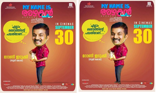 'മൈ നെയിം ഈസ് അഴകന്' റിലീസിന് നാല് നാള് കൂടി.ദുല്ഖറിന്റെ യമണ്ടന് പ്രണയ കഥയ്ക്ക് ശേഷം ബി.സി നൗഫല് സംവിധാനം ചെയ്യുന്ന ചിത്രത്തില് നടന് സുധി കോപ്പയും. റോണി ഇടുക്കി എന്ന കഥാപാത്രത്തെയാണ് ചിത്രത്തില് താരം അവതരിപ്പിക്കുന്നത്.