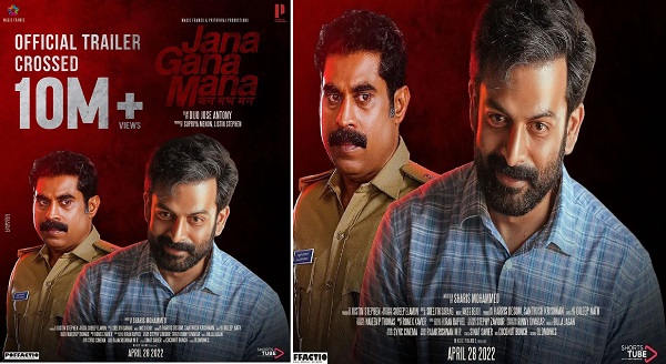10 മില്യണ് കാഴ്ചക്കാരില് കൂടുതല് ജനഗണമന ട്രെയിലര് കണ്ടുകഴിഞ്ഞു. 9 മില്യണ് കാഴ്ചക്കാര് കടന്നപ്പോള് സംവിധായകന് ഡിജോ ജോസ് ആന്റണിയുടെ ഉള്ളിലെ ആഗ്രഹമായിരുന്നു തന്റെ ട്രെയിലര് 10 മില്യണ് കാഴ്ചക്കാര് പിന്നിട്ട് കാണണമെന്നത്. അത് യാഥാര്ഥ്യമായ സന്തോഷത്തിലാണ് സംവിധായകന്. രണ്ടാഴ്ചക്കുള്ളിലാണ് ഈ സ്വപ്ന നേട്ടം ചിത്രം കൈവരിച്ചത്.