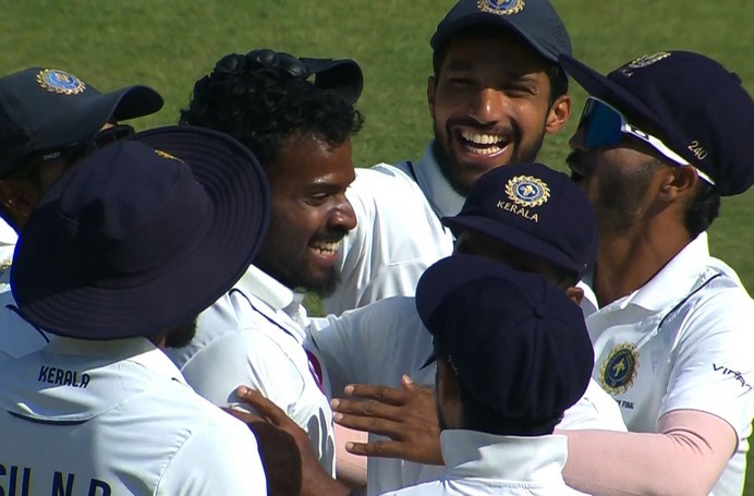 ആദ്യ ദിനത്തില് വിദര്ഭ ടീമിന്റെ വന്മതിലായി മാറിയ ഡാനിഷ്- കരുണ് നായര് കൂട്ടുക്കെട്ട് പൊളിക്കാന് കേരളം ഏറെ ശ്രമിച്ചെങ്കിലും എല്ലാം പരാജയമായി മാറിയിരുന്നു. അപ്രതീക്ഷിതമായി 86 റണ്സില് നില്ക്കെ കരുണ് നായരെ റണ്ണൗട്ടാക്കാന് കേരളത്തിന് സാധിച്ചത് മത്സരത്തില് നിര്ണായകമായി. രണ്ടാം ദിനത്തിലെ ആദ്യ സെഷനില് ആധിപത്യം നേടി കേരളം മത്സരത്തിലേക്ക് തിരിച്ചെത്തുകയായിരുന്നു. നേരത്തെ 24ന് 3 എന്ന നിലയില് തകര്ന്ന നിലയില് നിന്നാണ് കരുണ്- മലേവര് സഖ്യം 215 റണ്സ് കൂട്ടുക്കെട്ട് പടുത്തുയര്ത്തിയത്. കേരളത്തിനായി എം ഡി നിതീഷ്, ഏദന് ആപ്പിള് ടോം, എന് ബേസില് എന്നിവര് 2 വിക്കറ്റ് വീതവും ജലജ് സക്സേന ഒരു വിക്കറ്റും വീഴ്ത്തി