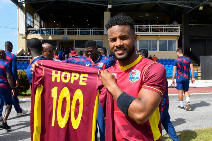 മത്സരത്തിൽ വിൻഡീസിനെ 300ന് മുകളിൽ അടിച്ചെടുക്കാൻ സഹായിച്ചത് ഷെയ് ഹോപ്പിൻ്റെ പ്രകടനമായിരുന്നു. നൂറാം മത്സരത്തിലെ സെഞ്ചുറിയോടെ പല റെക്കോർഡ് നേട്ടങ്ങളും താരം സ്വന്തമാക്കി. നേരത്തെ തൻ്റെ അമ്പതാം മത്സരത്തിലും ഹോപ്പ് സെഞ്ചുറി നേടിയിരുന്നു. 50മത്തെയും നൂറാമത്തെയും മത്സരത്തിൽ സെഞ്ചുറി സ്വന്തമാക്കുന്ന ലോകത്തെ ആദ്യതാരമാണ് ഷെയ് ഹോപ്പ്.
