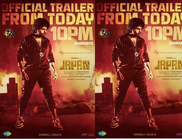 സിനിമാലോകം കാത്തിരിക്കുന്ന കാര്ത്തിയുടെ 25മത്തെ സിനിമയാണ് ജപ്പാന്. ടീസര് വലിയ ശ്രദ്ധ നേടിയിരുന്നു. ആരാണ് ജപ്പാന് എന്ന ചോദ്യത്തിന് ഉത്തരം കിട്ടാന് സിനിമ പ്രേമികള് അധികം കാത്തിരിക്കേണ്ടി വരില്ല.നിര്മ്മാതാക്കളായ ഡ്രീം വാരിയര് ട്രെയിലര് ഇന്ന് 10 മണിക്ക് പുറത്ത് വിടും എന്നതാണ് അപ്ഡേറ്റ്.