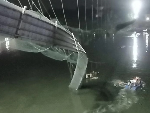മോര്ബിയിലെ മച്ചു നദിയ്ക്ക് കുറുകെയുള്ള പാലമാണ് വൈകിട്ട് 6.30 ഓടെ തകര്ന്നത്. അപകടം ഉണ്ടാകുന്ന സമയത്ത് അഞ്ഞൂറില് അധികം പേര് പാലത്തിലുണ്ടായിരുന്നു. പുതുക്കി പണിതശേഷം അഞ്ച് ദിവസം മുന്പാണ് പാലം തുറന്നുകൊടുത്തത്.